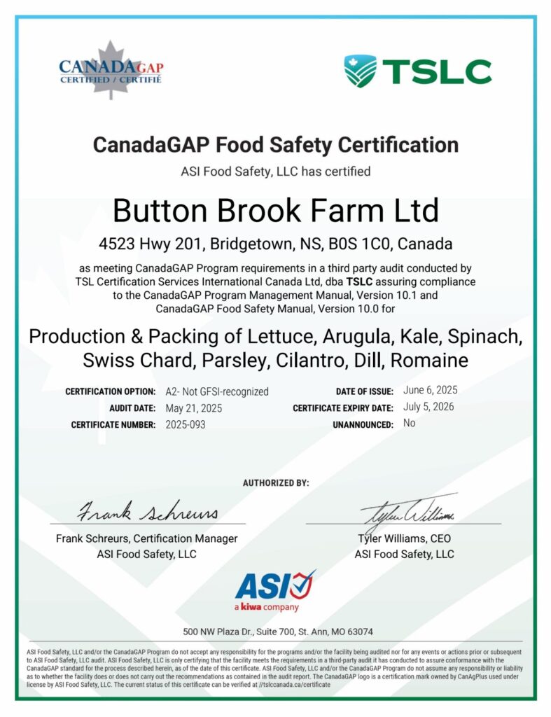 Our food safety program is certified under CanadaGAP.